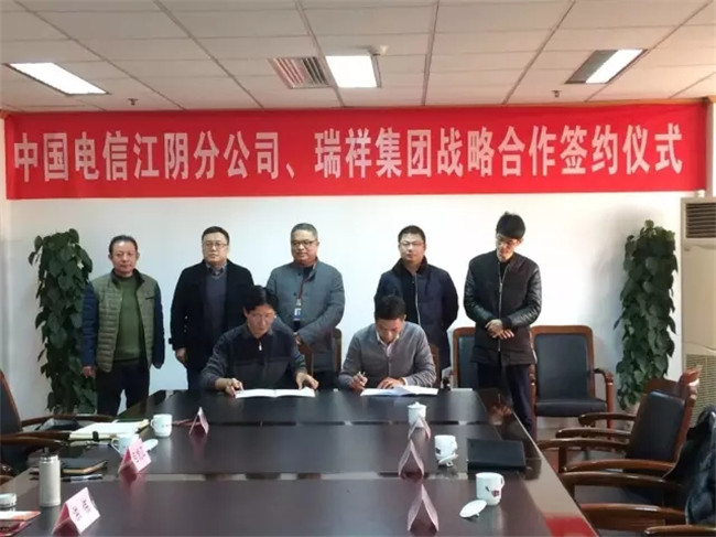 2016年11月24日,中国电信江阴分公司与瑞祥集团共同达成战略合作,并举行了协议签约仪式。江阴市电信局局长党委书记中国电信江阴分公司总经理洪伟、渠道部主任潘恩峰等,与瑞祥集团总裁袁云燕一行共同出席。