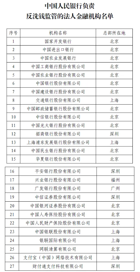 (二)部分全国性法人金融机构(名单见附件1)由中国人民银行作为其反洗钱监管行,其他法人金融机构按照属地原则,由机构总部所在地中国人民银行分支机构作为其反洗钱监管行。法人金融机构反洗钱监管行负责对法人金融机构履行反洗钱义务的情况进行全面监管。