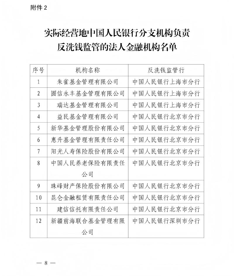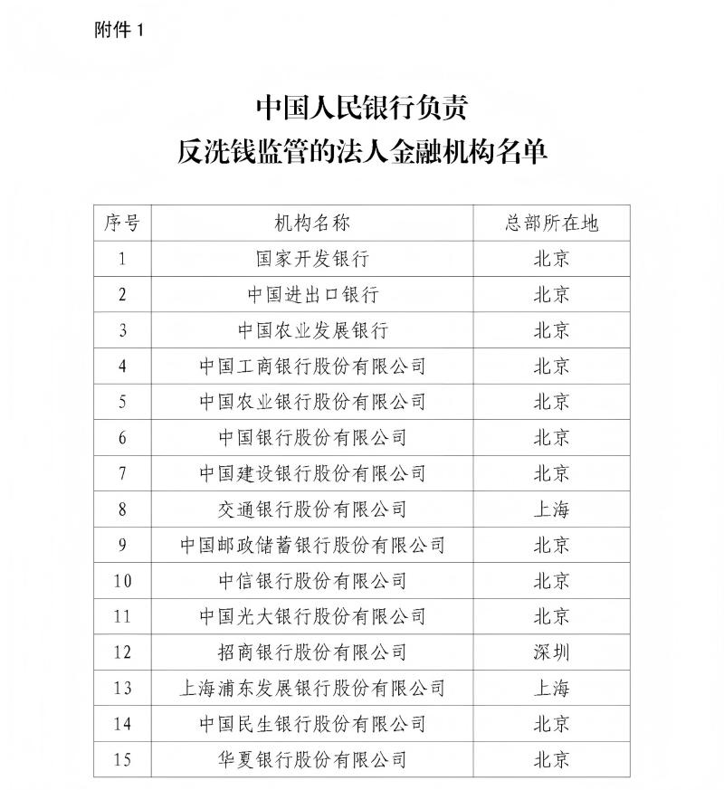 (二)部分全国性法人金融机构(名单见附件1)由中国人民银行作为其反洗钱监管行,其他法人金融机构按照属地原则,由机构总部所在地中国人民银行分支机构作为其反洗钱监管行。法人金融机构反洗钱监管行负责对法人金融机构履行反洗钱义务的情况进行全面监管。